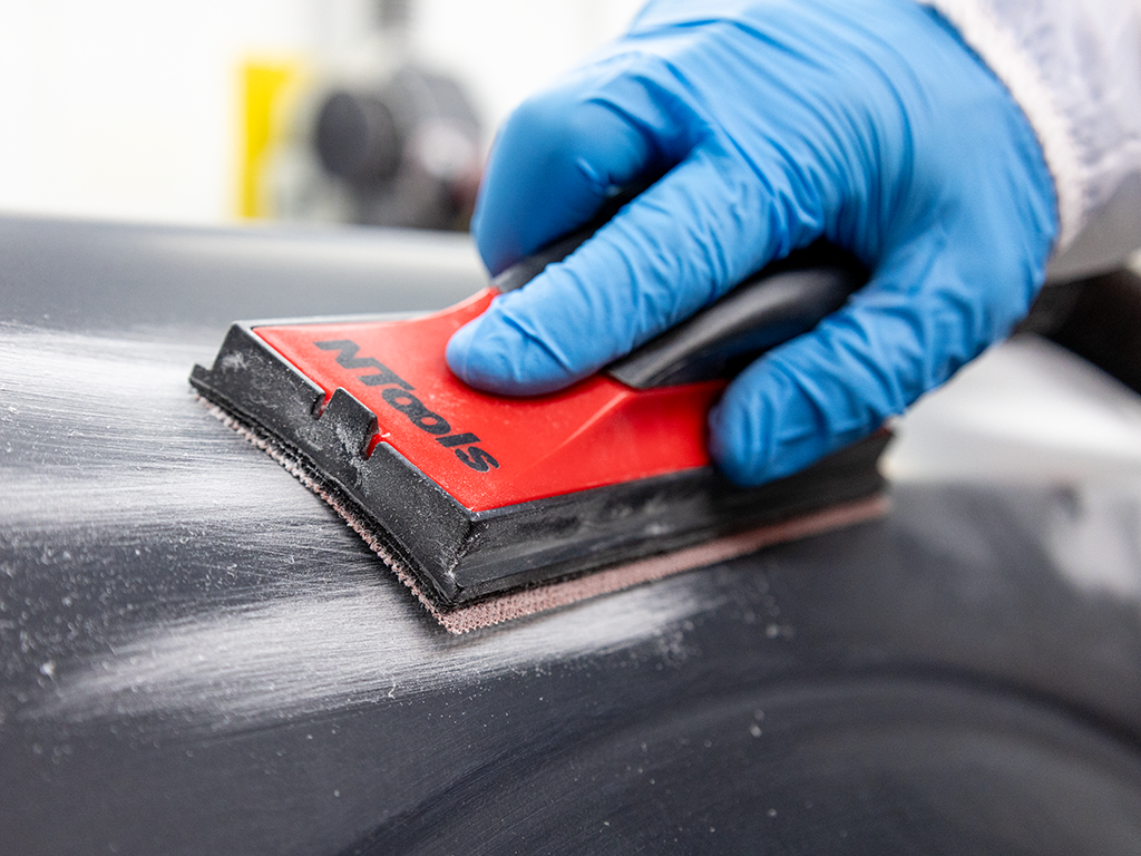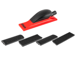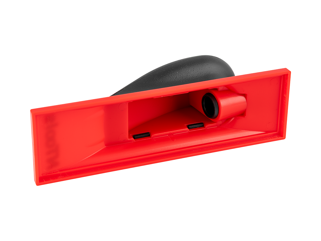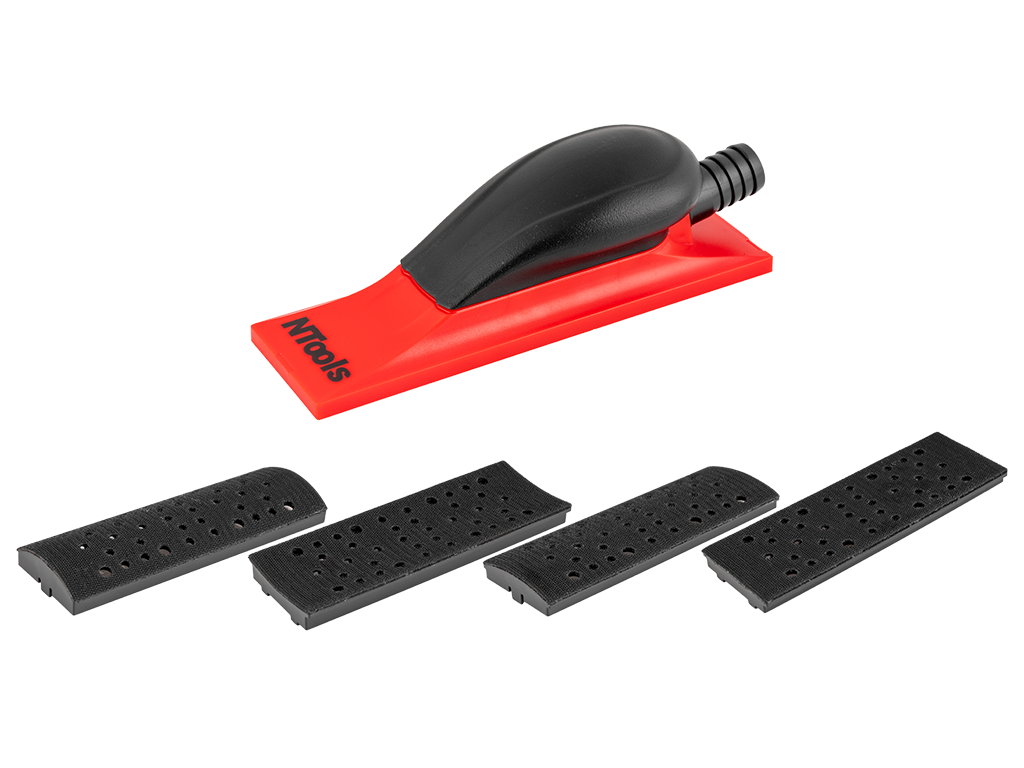 Ce bloc de ponçage en plastique de 70 x 198 mm est doté d'une fixation Velcro pour ponçage avec grille ou papier de verre. Il est équipé de 4 plateaux de ponçage : un plat, un concave et deux convexes (petit et grand rayon). Il est équipé d'un système d'aspiration et d'un raccord réglable pour le raccordement d'un tuyau d'aspiration. Compatible avec les systèmes d'aspiration NTools, Rupes et autres systèmes d'aspiration équipés de tuyaux de diamètre intérieur D29/35, comme le NTools KWO n° 600024, ou de tuyaux de diamètre intérieur D20.